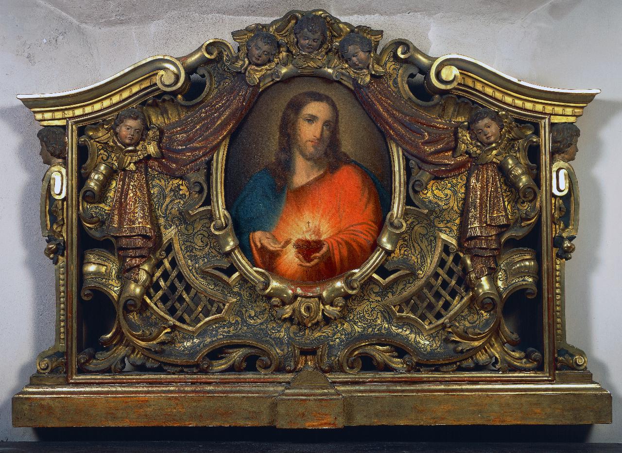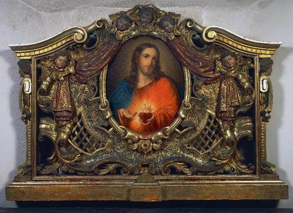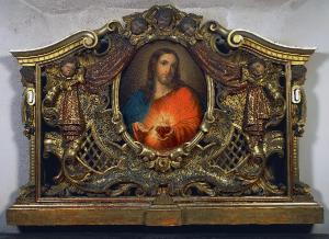piccolo dipinto ovale dotato di cornice riccamente ornata