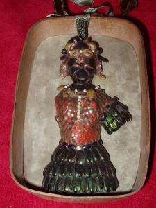 piccola scultura mancante di un braccio inserita all'interno di una scatoletta rettangolare