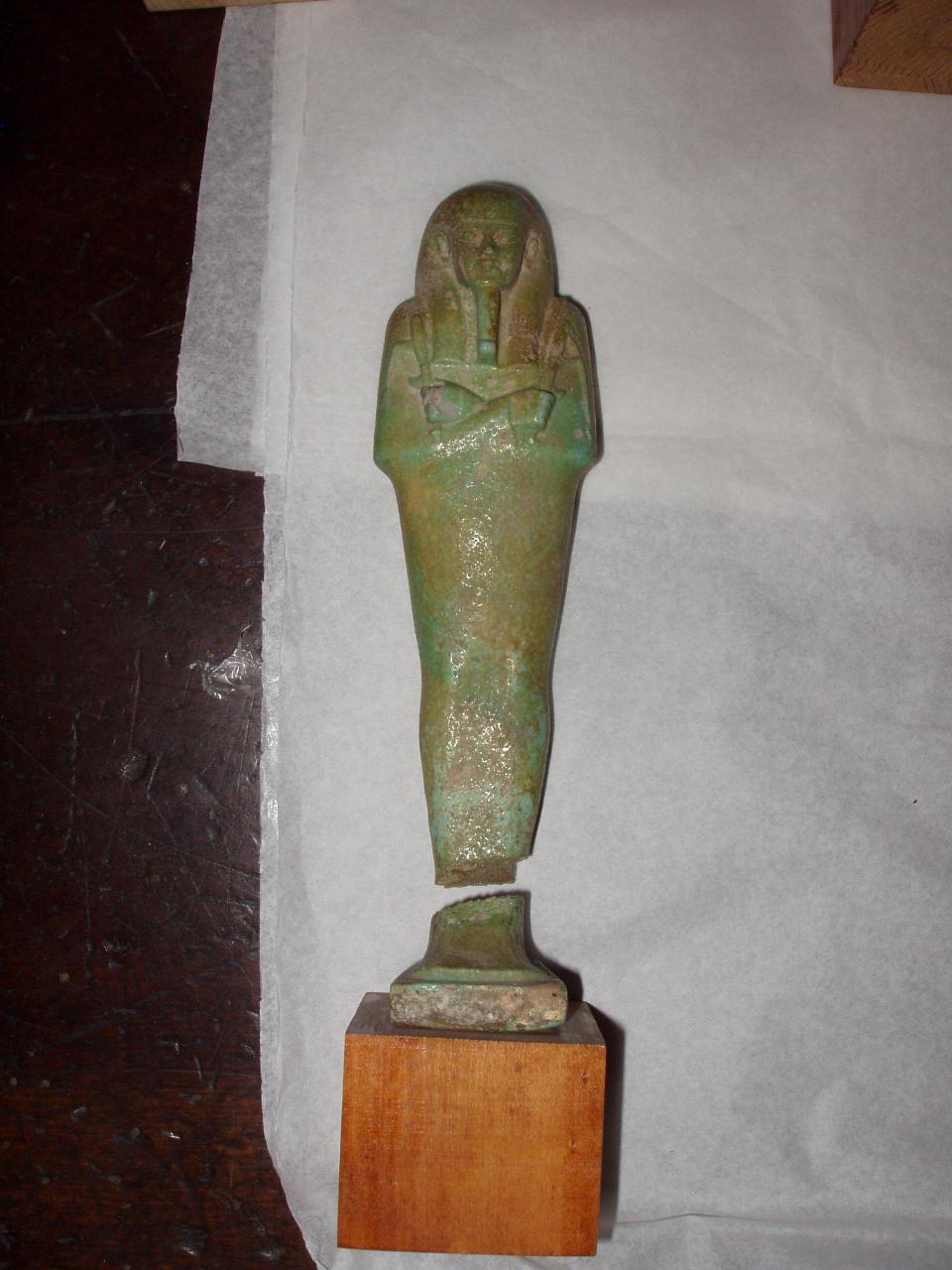 statuetta fratturata nella parte inferiore delle gambe, posta su base moderna