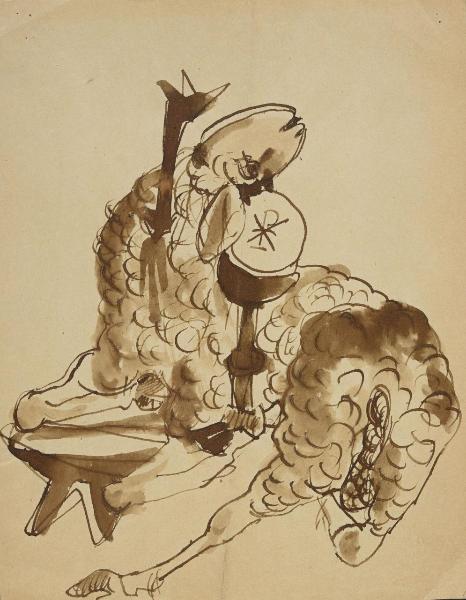 [Studio per una Crocifissione – Agnello con calice, Ostia e simboli]. angelo con calice e ostia