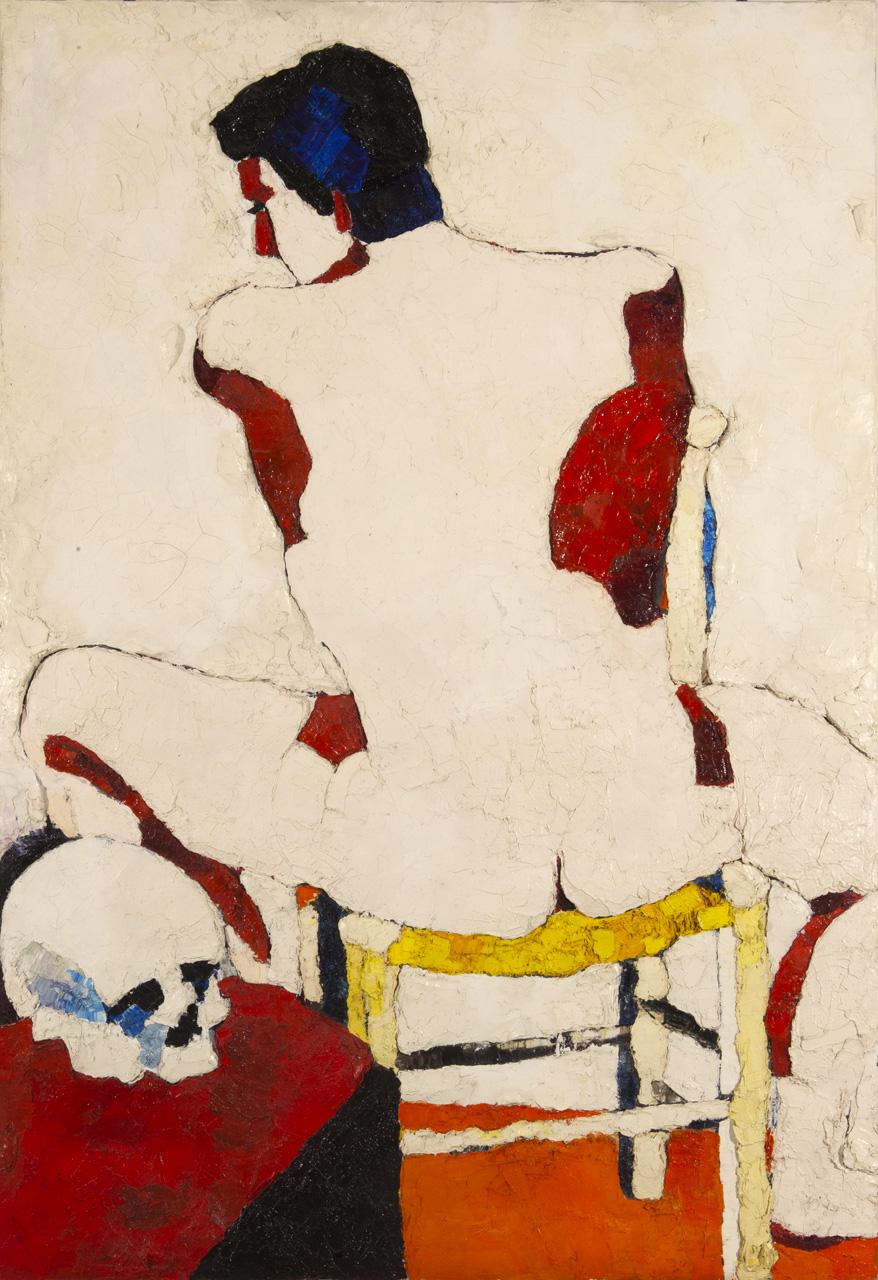 Ragazzo di schiena col teschio. figura maschile
