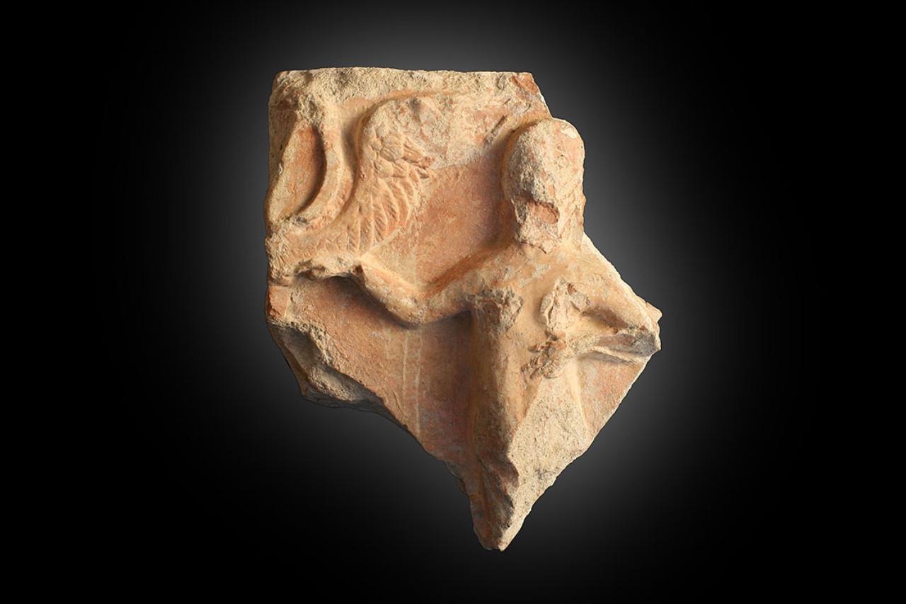 • NOTIZIE STORICO CRITICHE Frammento di formella verosimilmente riconducibile alla decorazione fittile dell'area absidale della Chiesa Maggiore di Santa Maria Assunta di Crema (Cattedrale dal 1580) eseguita da Bernardino de Lera e Lazzaro Pozzali nel 1486. Il lacerto costituisce parte dei materiali fittili decorativi rinvenuti durante i restauri degli anni Cinquanta del XX secolo del Duomo di Crema e riconducibili alla fase rinascimentale dell'edificio. Tali materiali, per lo più prodotti di risulta reimpiegati in passato come riempitivo di pavimenti e murature, entrarono a far parte delle collezioni del Museo Civico di Crema e del Cremasco nel 1960 attraverso le donazioni dell'architetto Amos Edallo e di Corrado Verga