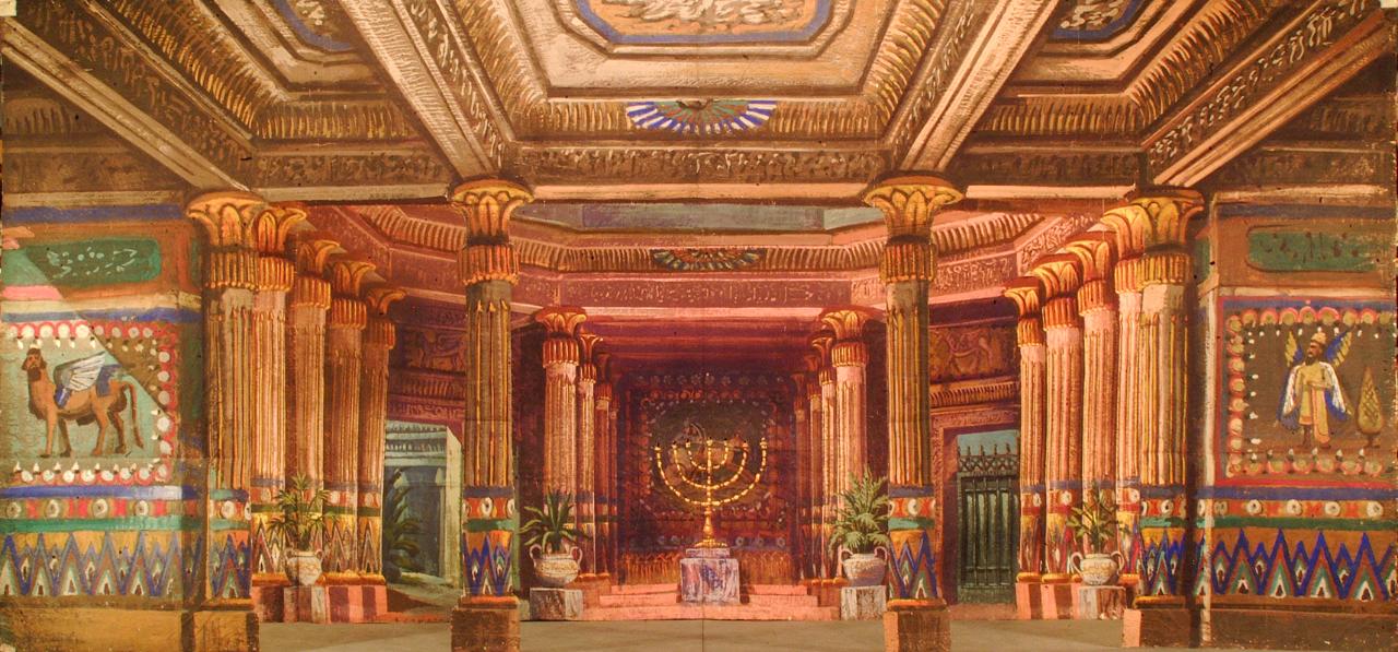 Scenografia in carta dipinta ad acqua e fortezzata con strisce di tela, composta da un fondale ed un principale.
