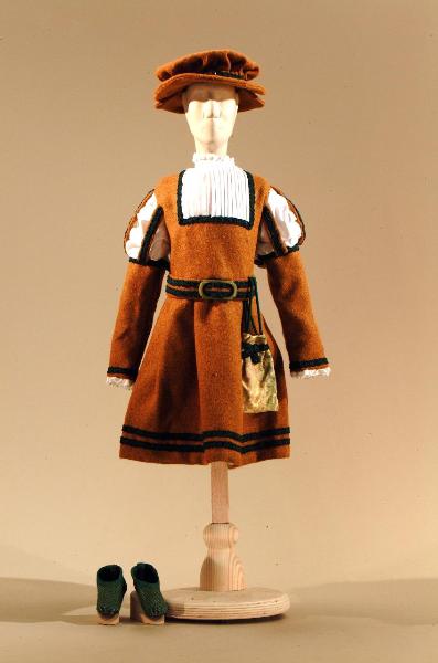 Costume per popolano del 1500 composto da veste, cintura, cappello, scarpe.