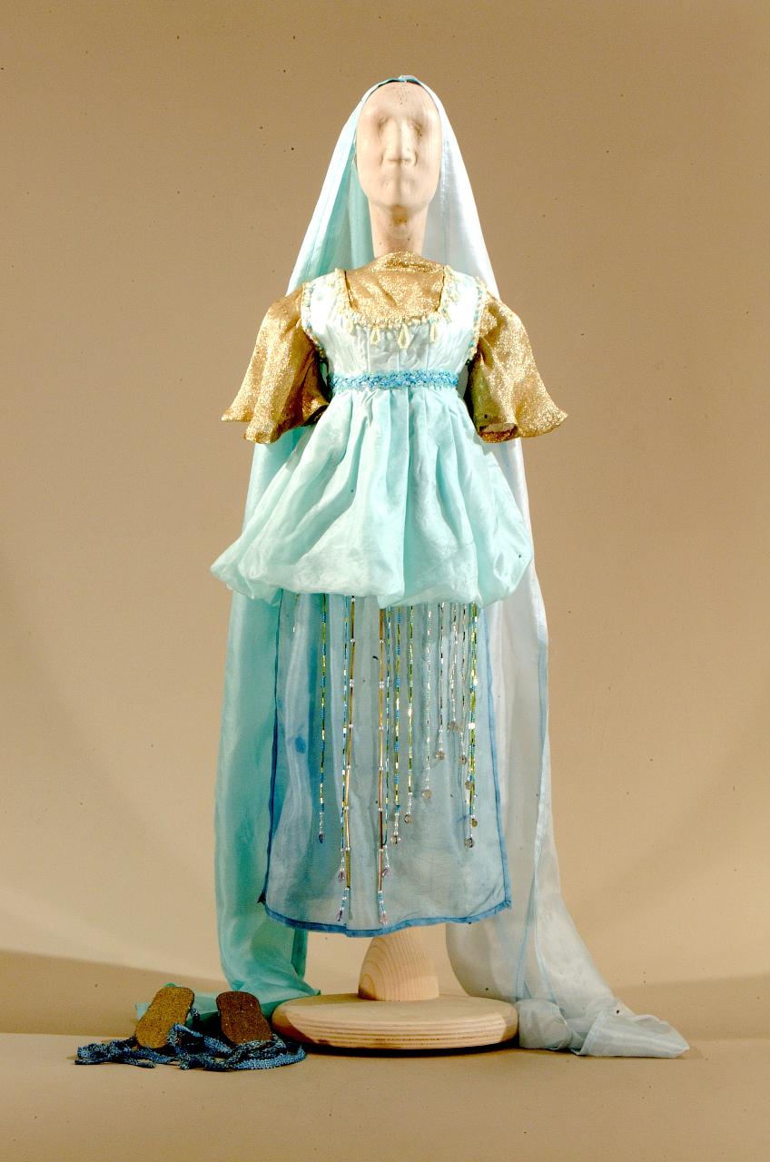 Costume per ballerina inserita in contesto del 1500 composto da veste, cintura, velo e scarpe.