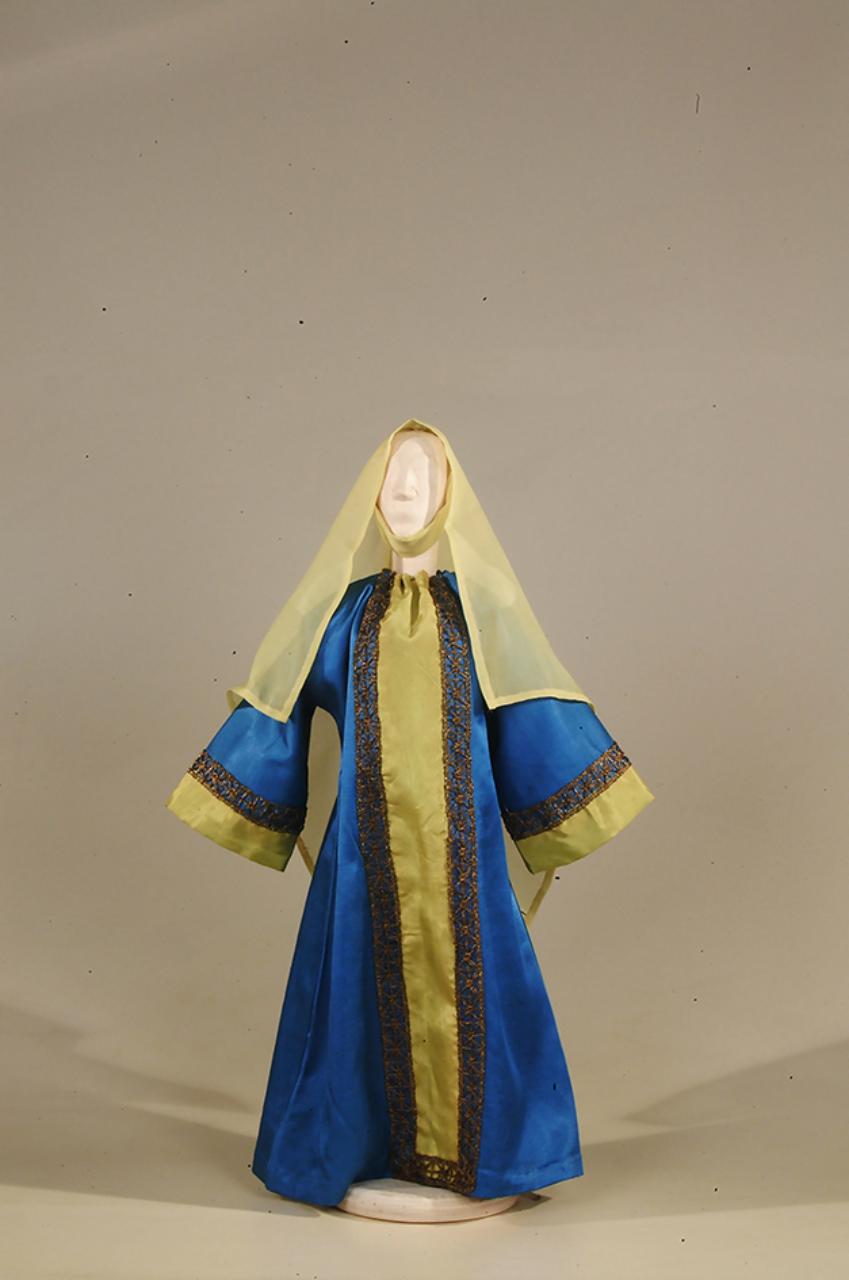 Costume borghese del '400 per figurino costituito da veste, velo e soggolo