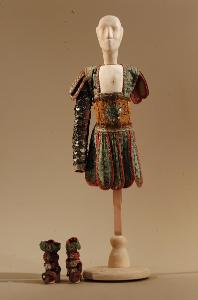 Costume per gladiatore romano, composto da veste, calzari, manica armata