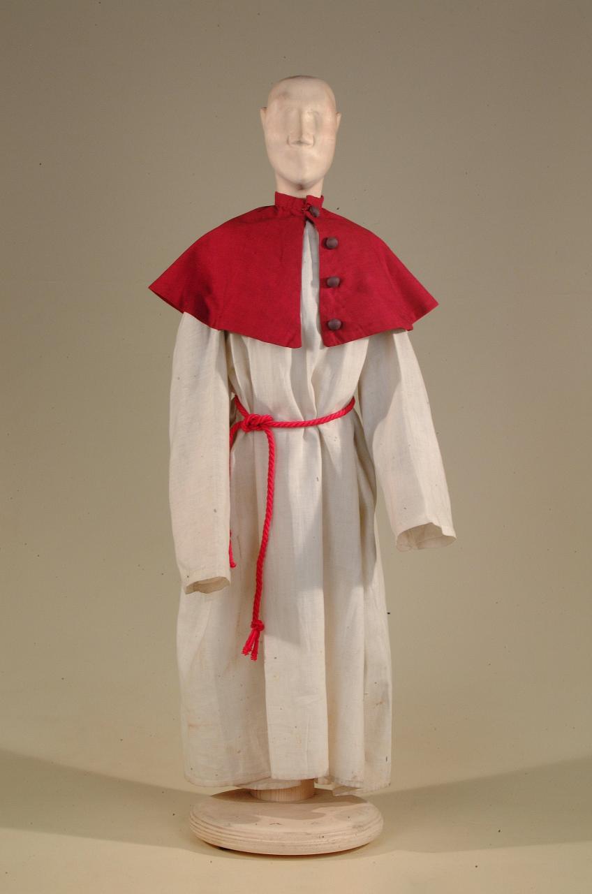Costume di religioso composto da veste, mantellina (mozzetta) e cintura (cordiglio)