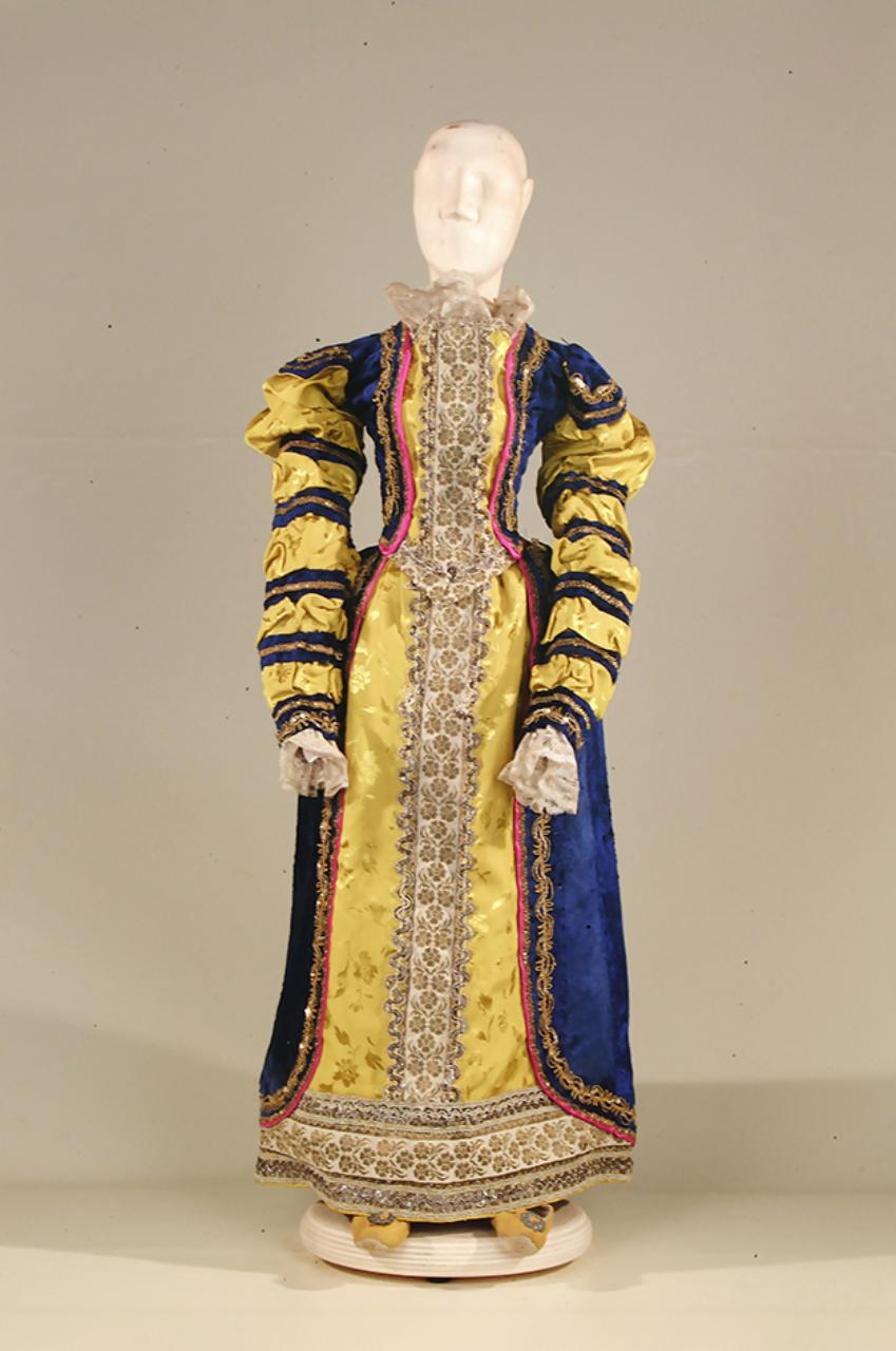 Costume per dama di foggia cinquecentesca composto da gonna, corpino e scarpe.