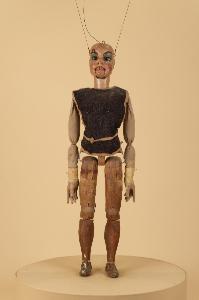 Testa in legno di tiglio fissata al corpo tramite un perno in ferro; occhi in vetro; bocca mobile; corpo normale in pioppo tagliato; snodo in vita ad anello rivestito in tela; gambe attaccate con ferro al bacino; ginocchia ad incastro; piedi mobili, piombati; mani in tiglio mobili e a dita separate. Bilancino originale a croce metodo Holden.
