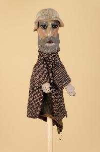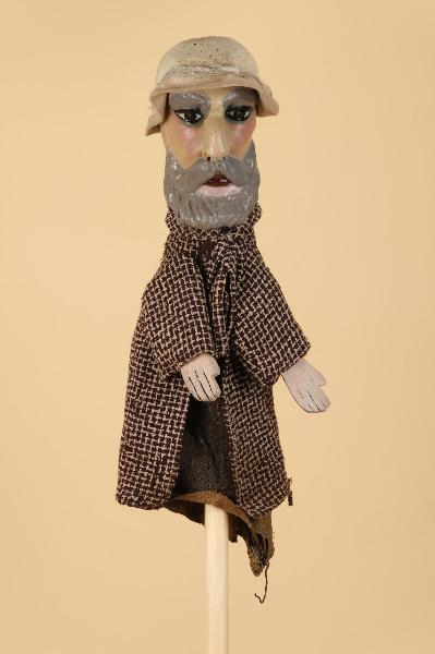 Questo burattino presenta un anziano signore con cappello coloniale.