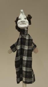 Burattino di Pulcinella con la testa scolpita a mano.