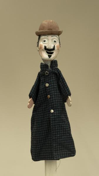 Burattino con personaggio con baffi e berretto, probabilmente Totò.