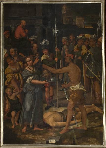 - NOTIZIE STORICO CRITICHE La tela pone il problema della collaborazione fra Callisto e i suoi fratelli, e forse qui è da individuare la mano di Scipione nella figura della Salomè che verrà riproposta in modo simile, ma come Santa Caterina d'Alessandria, nella grandiosa pala conservata ad Abbadia Cerreto.