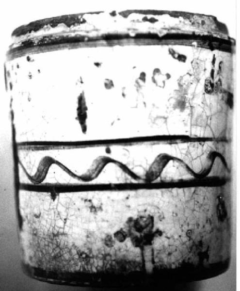 Vaso troncoconico orlo arrotondato, piede svasato. Colori: blu su fondo bianco.