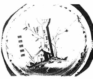 Casa, torre e alberi stilizzati.