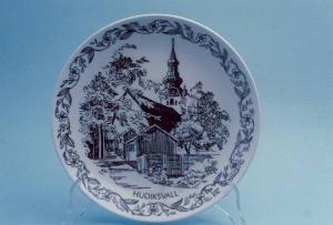 - NOTIZIE STORICO CRITICHE Si tratta di un piatto ricordo della città di Hudikvall, realizzato forse per qualche ricorrenza storica. L'opera è decorata dal disegnatore svedese Bengt Ivar Liljedahl che ha riprodotto uno scorcio della cittadina all'interno di una incorniciatura di fiori e foglie forse basandosi sui modelli precedenti disegnati da Sven Jonson e appartenenti alla stessa serie. Il piatto è infatti all'interno di una serie eseguita in anni diversi e con soggetti diversi, di cui sono conservati al MIDC alcuni esemplari (cfr. inv. nn. 1269, 1270, 1271, 1289).