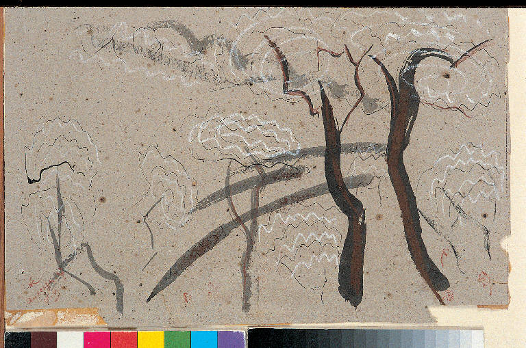 - NOTIZIE STORICO CRITICHE Nell'inverno del 1947, dopo quasi un anno di lavoro volontario in Molise, Congdon si trasferisce a Capri, presso la famiglia Cerio. In questo clima colto e cosmopolita, ha davvero inizio la sua carriera pittorica e il bozzetto Capri (c) può considerarsi uno dei primissimi documenti, in cui già l'artista manifesta la propria vocazione paesaggistica. La veduta dello scosceso interno dell'isola resa con una economia di segni quasi giapponese: poche linee e tronchi di olivi. L'elemento grafico sembra qui prevalere, ma non può sfuggire la precisa qualità tonale conferita dal colore della carta - un grigio-beige piuttosto caldo - in contrappunto con il nero e il grigio scuro dell'inchiostro. E gli scarabocchi a gessetto bianco, oltre a suggerire le chiome degli olivi, animano la superficie con effetti francamente luministici, che saranno una costante della produzione successiva.