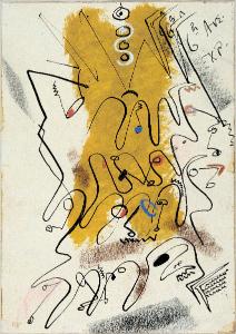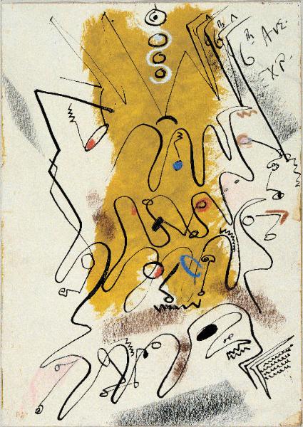 - NOTIZIE STORICO CRITICHE L'opera appartiene alla serie di lavori a tecnica mista su carta eseguiti da Congdon in seguito al suo primo incontro con New York. Più che la descrizione realistica di un luogo-emblema della realtà urbana, l'artista sembra qui voler registrare come un sismografo le molteplici e contrastanti sensazioni - la folla brulicante, le luci livide, i suoni stridenti, il movimento convulso di un'ora di punta. Con evidenti reminiscenze di Klee, l'artista dissocia nettamente disegno e colore: da una parte la grande macchia gialla verticale al centro (la cui forma vagamente ad X parrebbe alludere ad uno scorcio prospettico) accompagnata da altri radi tocchi di colore vivace; dall'altra il flusso nervoso, labirintico della linea tracciata con l'inchiostro che si riversa ad onde verso il primo piano a sinistra.