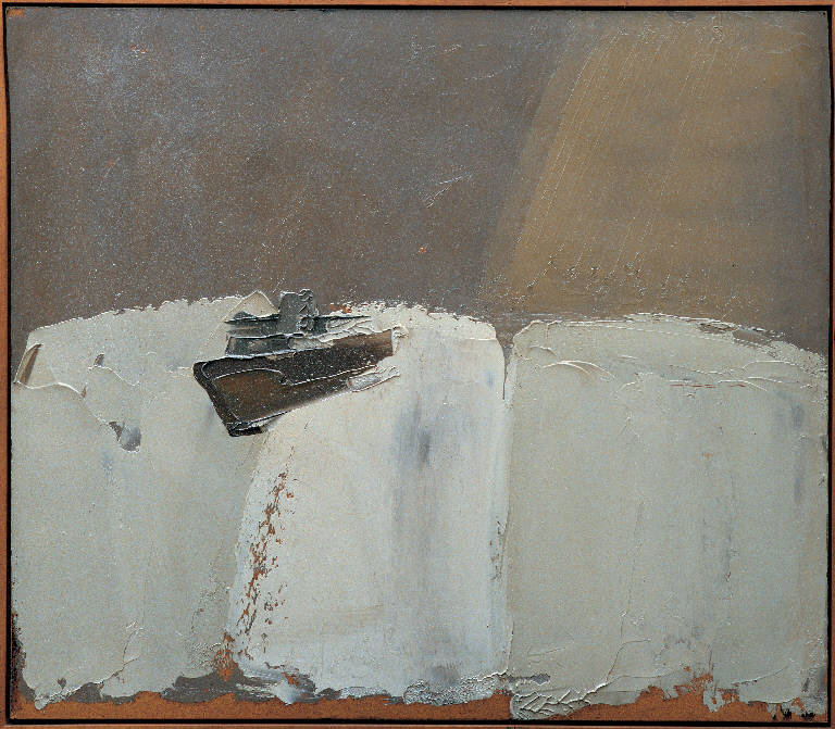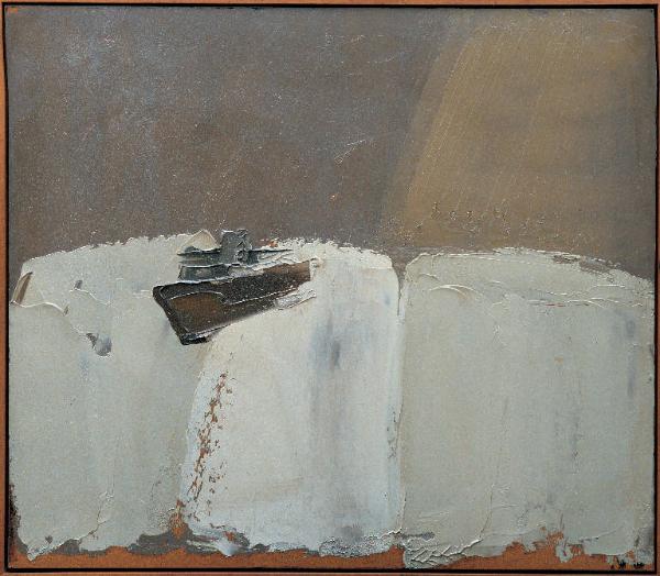 - NOTIZIE STORICO CRITICHE Le navi, come gli edifici, assumono nell'immaginario congdoniano natura di persone, nel senso originario di dramatis personae. Lo dimostra la serie Otranto, dipinta proprio negli stessi giorni della serie Heleanna. Come in quest'ultima, la sagoma della nave assume un aspetto vagamente fantomatico: "nave contra [sic] il sole pomeridiano scendendo la costa d'Italia verso Albania, verso la Grecia", come recita il diario del 13 agosto 1972. Rispetto al numero 4, il 5, di dimensioni più grandi, sembra perdere quanto a sintesi ed equilibrio delle masse e dei toni di colore. La superficie è più articolata e mossa, emergono più forti contrasti di tono ed effetti di luce dorata particolarmente preziosi nel cielo. La sagoma della nave è più netta e si protende in avanti con uno slancio e un rilievo tridimensionale più pronunciati.