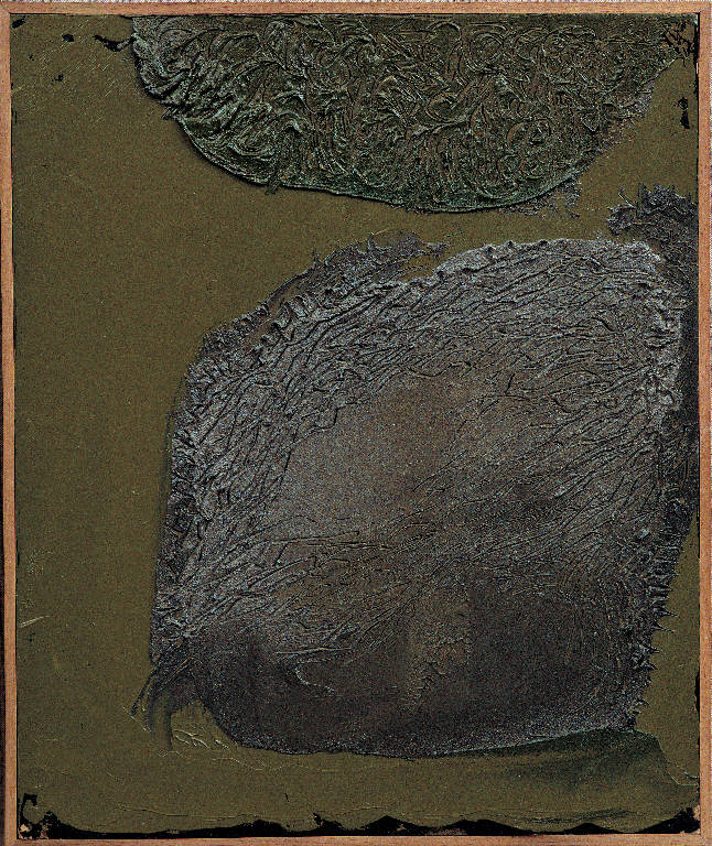 - NOTIZIE STORICO CRITICHE Le annotazioni diaristiche raccolte osservando il grande fiume peruviano daranno avvio alle prove dedicate a Iquitos e alle sue isole. Sono opere che si possono considerare "preparatorie" per la più complessa serie Iquitos - Pioggia. Come viene suggerito dai numerosi schizzi, il fiume, oltre a essere investito di un complesso valore simbolico, si riduce a un fondo-sfondo giallo nel quale galleggiano due enormi masse, le isole, appunto, incise e graffiate quasi a ricordo di alcuni quadri del deserto ("Iquitos - Isole, 14").