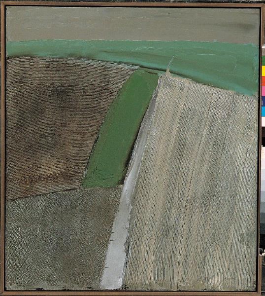 - NOTIZIE STORICO CRITICHE "Primavera 3" è un'opera di transizione tra due serie del ricchissimo 1981: la veduta a volo d'uccello, l'orizzonte alto, le partiture regolari di campi segnati dal pettine rimandano alla serie "Terra Arida", ma la "finestra" di verde intenso (la marcita) al centro del dipinto inaugura la nuova serie dei "Primavera" che si protrarrà fino al maggio. Si conferma la nuova tendenza, maturata poi per tutto il decennio, ad ordinate e regolari partiture di colore, come pure all'uso del pettine per l'incisione. Circa l'impiego di questo nuovo strumento, si considerino le stesse riflessioni dell'artista: «il pregio del pettine - [le] "cui infinite righe come una sola, impone [sic] silenzio e spazio ..." Pettine, come [ho] detto io, meccanico lo è, ma è anche un silenzio (orientale) ... Il pettine con il quale aro i campi nei quadri mi è stato certamente suggerito da questi trattori che su e giù, "criss cross", i campi a lampo [sic] - pettinando anche loro in un batter d'occhio ..."