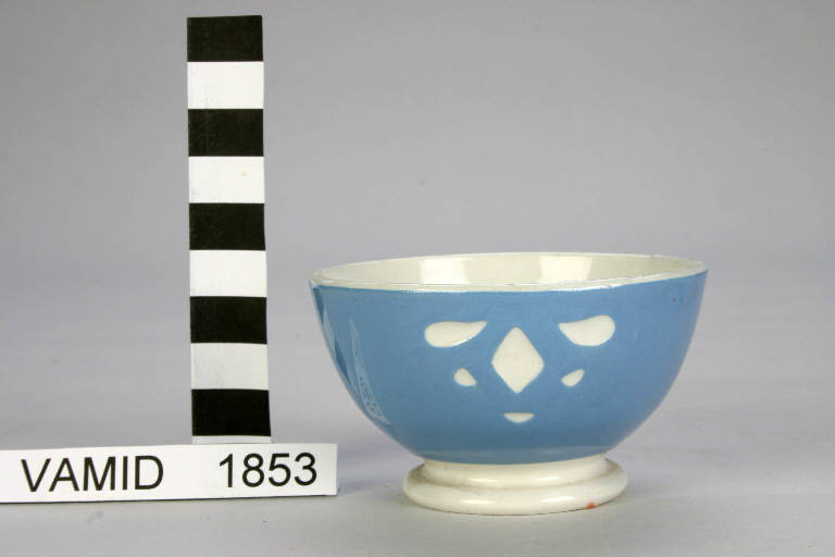 - NOTIZIE STORICO CRITICHE La ciotola da colazione fu prodotta dalla ditta lavenesi Revelli. La decorazione è ottenuta applicando sul fondo lo smalto di colore azzurro a rilievo.