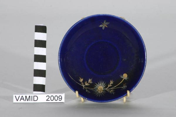 - NOTIZIE STORICO CRITICHE Il piattino fa parte di un servizio in blu cobalto databile tra la fine dell'Ottocento e l'inizio del secolo successivo. La coloritura blu è eseguita sottosmalto mentre i fiori sono realizzati in parte a rilievo a terzo fuoco in policromia e con oro brillante.