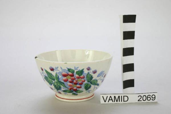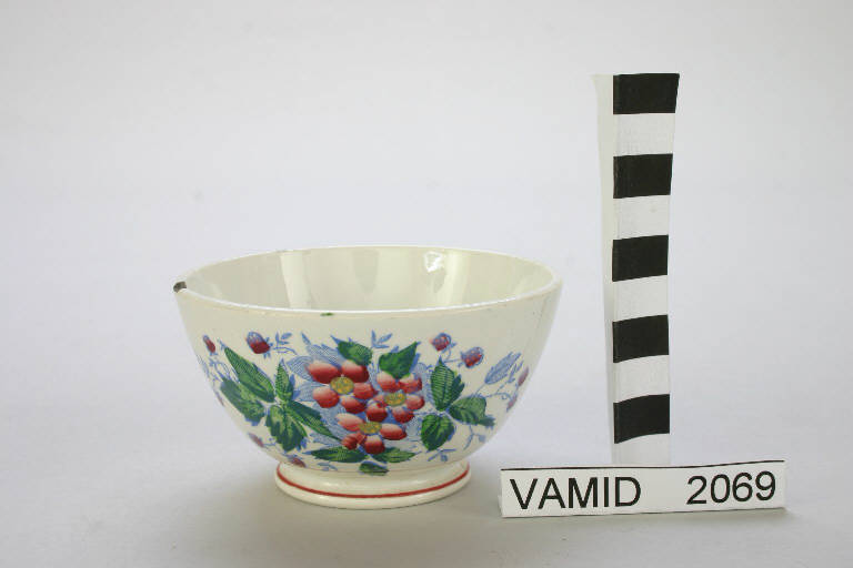 - NOTIZIE STORICO CRITICHE La ciotola è decorata con transfer azzurro applicato sottosmalto e colorata a mano sempre sottosmalto in verde, bordeaux e giallo.