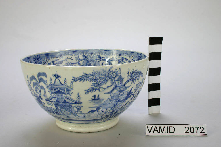 - NOTIZIE STORICO CRITICHE La ciotola è decorata con transfer azzurro con paesaggio orientale, applicato sottosmalto. La produzione Colandine si inquadra nell'ambito dell'Ottocento inglese ed è caratterizzata dall'ispirazione orientale degli ornati e dall'utilizzo della tecnica del tranfer print, ovvero dell'impiego di decalcomanie da applicare sulla ceramica in cottura prima della smaltatura.