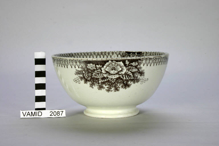 - NOTIZIE STORICO CRITICHE La ciotola è decorata con transfer di colore grigio. Analoghe ciotole, similmente decorate, furono prodotte dalla manifattura di Sarreguemines e dalla Società Ceramica Italiana di Laveno.