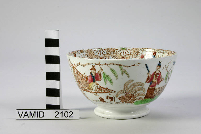 - NOTIZIE STORICO CRITICHE La ciotola è decorata con transfer marrone applicato sottosmalto e colorato, sempre sottosmalto, in verde, blu, giallo e rosa. Il termine ante quem è l'anno di fusione della Richard con la Ginori e del conseguente cambiamento della ragione sociale in Richard-Ginori.