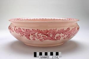 - NOTIZIE STORICO CRITICHE Il catino fa parte di un servizio igenico da camera eseguito in serie dalla manifattura di Sarreguemines. Il rigoglioso decoro vegetale è stampato sottosmalto.