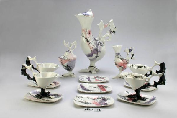 - NOTIZIE STORICO CRITICHE Un servizio particolare e che rientra nella sezione degli “Articoli Fantasia” è il noto servizio da tè Gallina C73 di Antonia Campi esposto alla IX Triennale. Il servizio venne elogiato da Gio Ponti in un articolo della rivista “Domus” del luglio 1951:\n\n"Antonia Campi ha trasformato in un “servizio” le espressioni formali che le sono care e consuete, e che sono completamente astratte da ogni funzionalità, destinazione ed economia produttiva. Questo servizio apparterrà non alla storia del costume, ma alla storia del gusto e si avvicinerà nelle “vetrine” di casa a tanti predecessori, servizi da vedere e non toccare. È un servizio “in marcia”, uccelliforme: l’astrattismo (o concretismo formale) sbocca spesso (o prende le mosse) in forme naturalistiche, animaliformi. I suoi presupposti sono più vicini alla natura che alla geometria, alla analisi psichica che a quella geometrica. (...) Queste ceramiche non solo si muovono, ma saltellano, sculettano e lanciano stridi. Solo la forma classica è silenziosa e immota, solo l’accademia è muta. Qui siamo nel “parlato” della ceramica" (Gio Ponti, La ceramica italiana, in “Domus”, N. 260, luglio 1951, p. 35).\n\nL’elemento distintivo di questo servizio fu proprio il pregnante e particolare zoomorfismo, più volte affrontato dalla designer valtellinese, soprattutto nel suo primo periodo presso la manifattura di Laveno. In questo caso venne interpretato in chiave ironica, scherzosa e irriverente, ma sempre in modo elegante e delicato.\nLe forme risentono degli insegnamenti delle lezioni di Salvador Dalí, Max Ernst, Yves Tanguy e Hans “Jean” Arp; la decorazione pittorica, invece, sembra prendere ispirazione da stilemi surrealisti.\nIl servizio fu realizzato in terraglia forte in pasta bianca decorato con smalti di colore nero, viola e rosa e con decori applicati a stampa sottosmalto. È composto da una teiera, una lattiera, una zuccheriera, quattro tazze e sette piattini.\nLa società produsse sia esemplari decorati, in diverse varianti cromatiche, sia in una versione più semplice, e forse più appetibile al gusto comune del pubblico, giocata sul contrasto tra lo smalto nero e bianco.