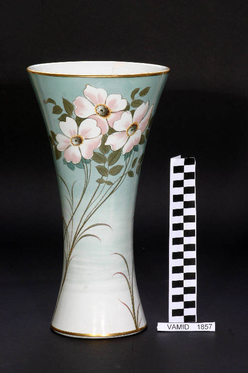 - NOTIZIE STORICO CRITICHE Il manufatto, decorato a mano sopra vernice, è segnalato nel catalogo "Articoli di fantasia e decorazione" del 1908 come "vaso forma nuova".