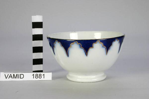 Ciotola da colazione decorata a festoni lungo il bordo superiore in blu cobalto sotto smalto. Rifiniture in oro brillante.