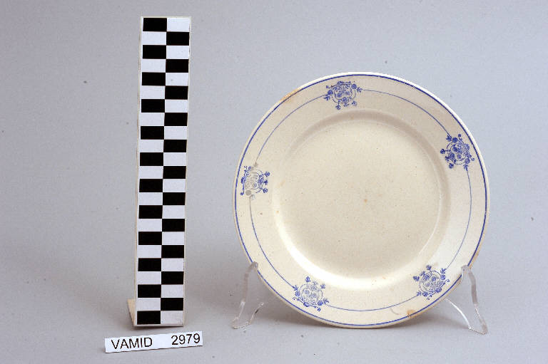 - NOTIZIE STORICO CRITICHE Il manufatto in esame, appartenente ad un servizio di piatti composto da quattro elementi (nn. inn. 2976-2979 ), rientra in una tipologia di vasellame di gusto corrente risalente agli anni '20-'30 del Novecento. Il decoro vegetale, realizzato con la tecnica della decalcomania, è privo di effetti tridimensionali e luministici e si dispone regolarmente lungo la tesa. La realizzazione del piatto è avvenuta dopo la fusione della Società Ceramica Richard con l'antica manifattura di Ginori di Doccia, avvenuta nel 1896. Il marchio presente sul fondo, secondo il Morazzoni della Società Ceramica Richard Ginori, fu in uso indicativamente dal 1883 al 1960 e fu impresso solo sulle terraglie prodotte nello stabilimento di San Cristoforo. Il piatto fa parte di una donazione di privati al Museo.