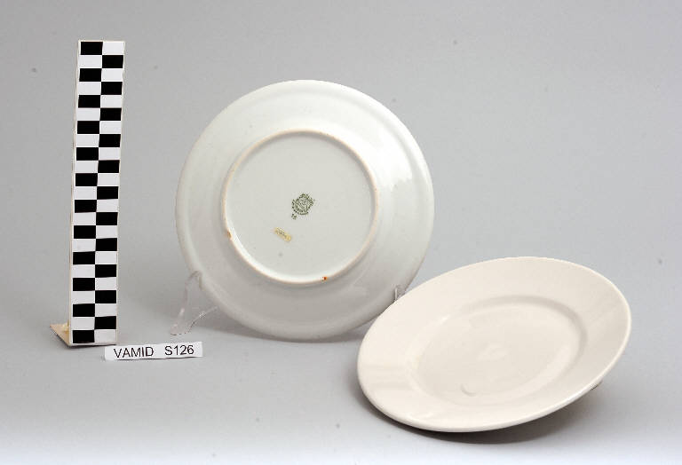 - NOTIZIE STORICO CRITICHE Il servizio in esame, composto da due elementi (nn. inv. 2970-2971), rientra in una tipologia di vasellame di gusto corrente. La foggia semplice ed essenziale dei piatti indica una piena assimilazione della lezione sul funzionalismo e quindi una datazione ormai avanzata nel Novecento. La mancanza di caratteri stilistici particolari impedisce una definizione cronologica più circoscritta. La ditta produttrice, denominata "Società Ceramica del Verbano", venne fondata nel 1924 per competere con la porcellana di Doccia. Malgrado la qualità materica e formale dei suoi servizi, la "Verbano", non ebbe mai sul mercato della porcellana la potenza della Ginori. Il servizio fa parte di una donazione di privati al Museo.