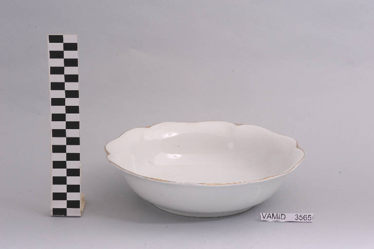 - NOTIZIE STORICO CRITICHE L'oggetto in esame, appartenente ad un servizio da tavola composto da cinquantaquattro elementi (num. inv. 3102...3565), rientra in una tipologia di vasellame di gusto popolare. Il design sobrio ed elegante, una linea ondulata e il bordo sottolineato da una filettatura oro denotano una ricerca stilistica riferibile alla metà del Novecento. La "Società Ceramica del Verbano" venne fondata nel 1924 per competere con la porcellana di Doccia. Malgrado la qualità materica e formale dei suoi servizi, la "Verbano", non ebbe mai sul mercato della porcellana la potenza e l'inventiva della Ginori. L'insalatiera fa parte di una donazione di privati al Museo.