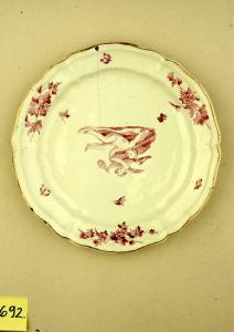 - NOTIZIE STORICO CRITICHE La provenienza del piatto non è documentata. La tipologia decorativa e formale è coerente con la produzione lodigiana della manifattura Antonio Ferretti, confermata dalla presenza del "chiodo" blu presente sul retro, dove fu realizzato tra il 1780 e il 1796. In particolare si può notare un influsso di un codice formale neoclassico nella raffigurazione dei due amorini (Ausenda 2001, p. 224).