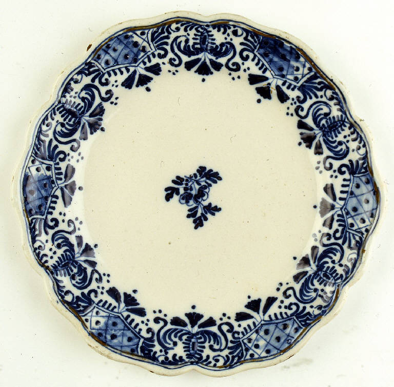 - NOTIZIE STORICO CRITICHE Il piatto, di proprietà della collezione privata di Eisner von Eisenhof, ha una decorazione che riprende il disegno di altri due piatti marcati Coppellotti [Inv. 1106 e Inv. 323, 324]. Il semplice riferimento ornamentale non basta però ad attestarne la provenienza, per la presenza di altre realtà produttive della ceramica lodigiana del secondo quarto del XVIII secolo, in particolare, delle imprese Caravaggio e Roda.