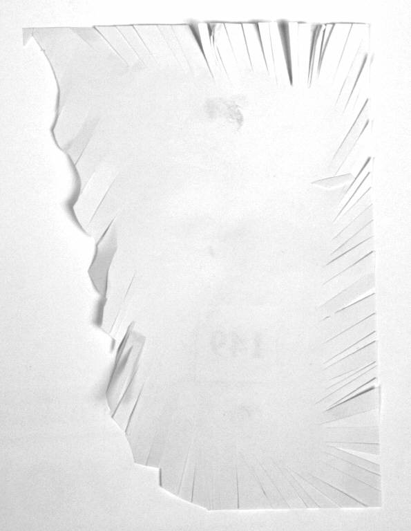 forma di carta bianca sfrangiata sui bordi. Colore: bianco. Soggetto: tappeto.