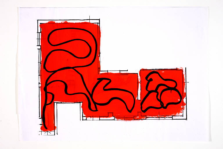- NOTIZIE STORICO CRITICHE questo disegno appartiene ad un insieme molto vasto di disegni preparatori che hanno portato alla realizzazione della casa/opera permanente Comunità Parpagliona a Sesto San Giovanni (Milano). La comunità è gestita da Cooperativa lotta contro l'Emarginazione ed ospita diverse persone con disagio psichico. Vedi bibliografia di riferimento, in particolare "WurmkosAbitare" a cura di Simona Bordone, Editrice Compositori, Bologna 2005. \nL'opera è stata esposta in diverse installazioni.