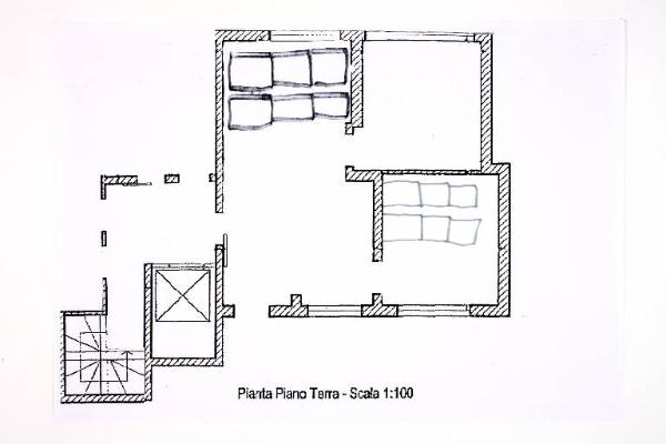 pennarello su fotocopia di carta bianca. Colore: nero. Soggetto: progetto di pavimento. Scritta: "pianta piano terra - scala 1:100".