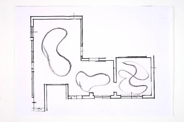 fusaggine su fotocopia di carta bianca. Colore: nero, grigio scuro. Soggetto: progetto di pavimento. Disegno firmato e datato sul verso: "Angela 18/02/02".