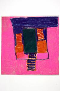 tecnica mista: pennarello e acrilico su cartoncino bianco. Colore: fucsia, blu di Prussia, arancio, verde scuro, rosso. Soggetto: pianta di interno.