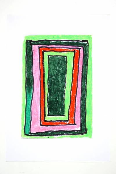 pastello a olio e pennarello su carta bianca. Colore: rosso, nero, verde pisello, verde scuro, rosa. Soggetto: pianta di interno.