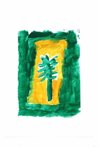 acrilico su acetato. Colore: arancio chiaro e scuro, verde opaco chiaro e scuro. Soggetto: elemento decorativo.