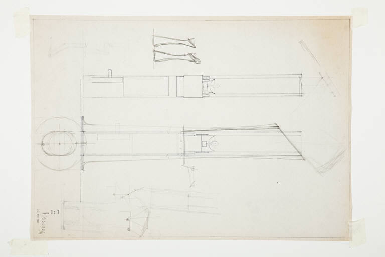 Copia su carta da lucido raffigurante due sezioni della lampada Gibigiana ancora in fase di progetto con alcuni interventi dell'arch. Achille Castiglioni.