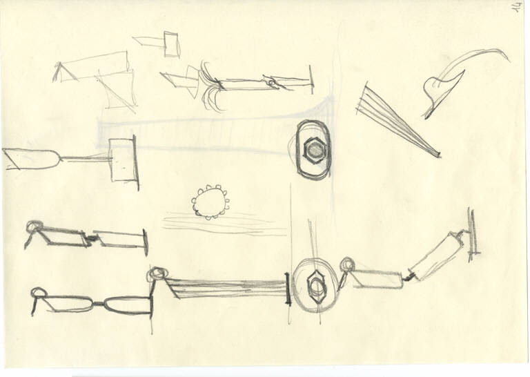 Schizzi in matita di particolari della lampada da tavolo Gibigiana.